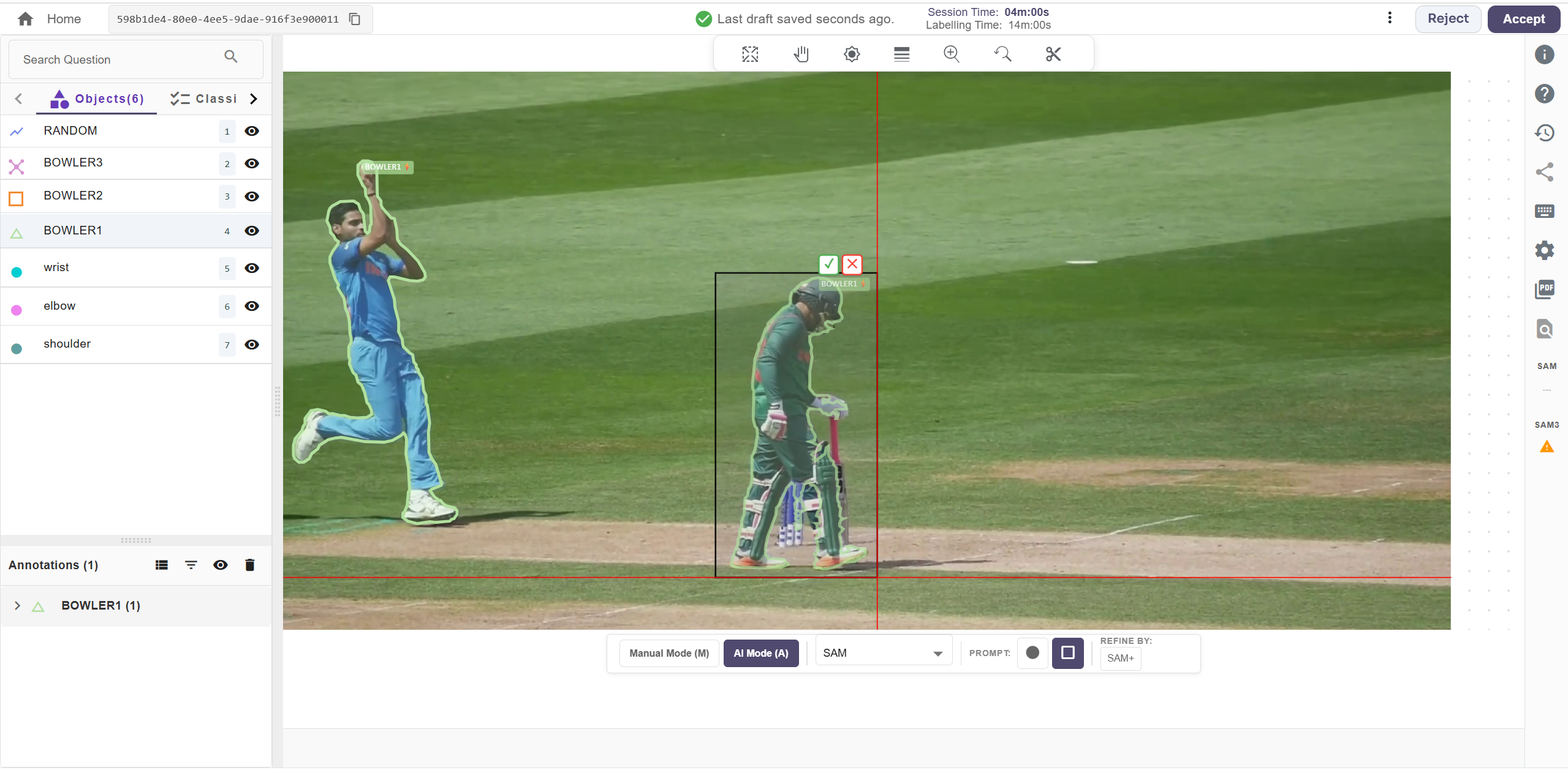 User can drag the cursor to draw the pixel perfect annotation on an object. Press ‘Shift’ key and then drag the cursor towards the boundaries of an object.