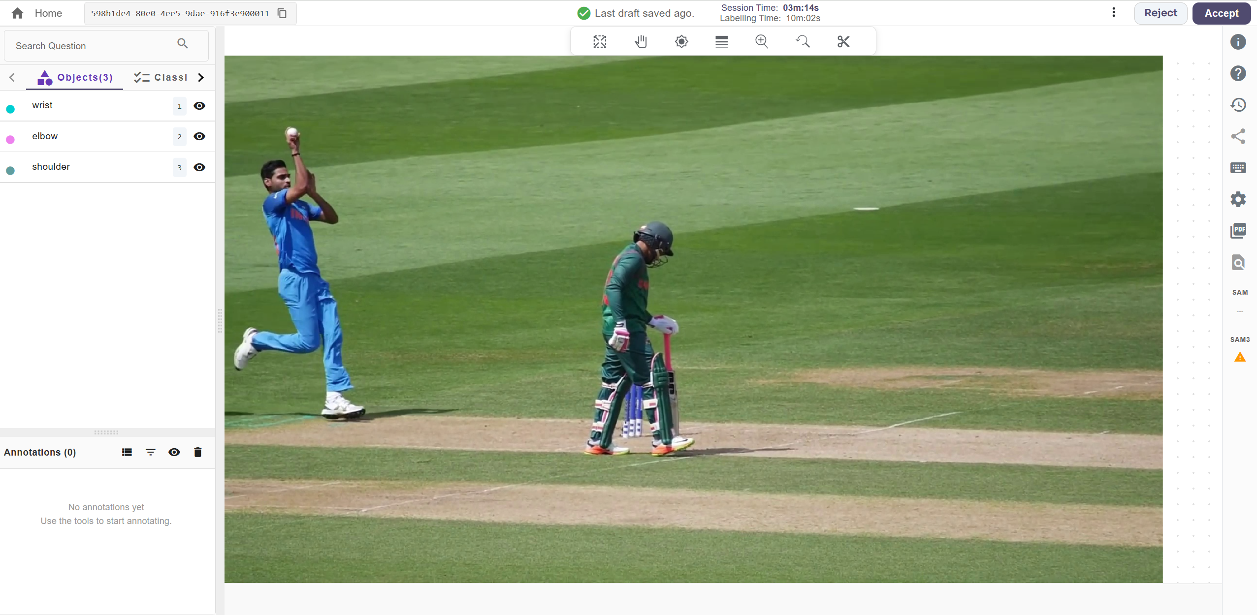 The bottom-left part of the screen shows a list of all annotated object names. To provide feedback on a specific annotation:- Scroll through the list of annotated object names.